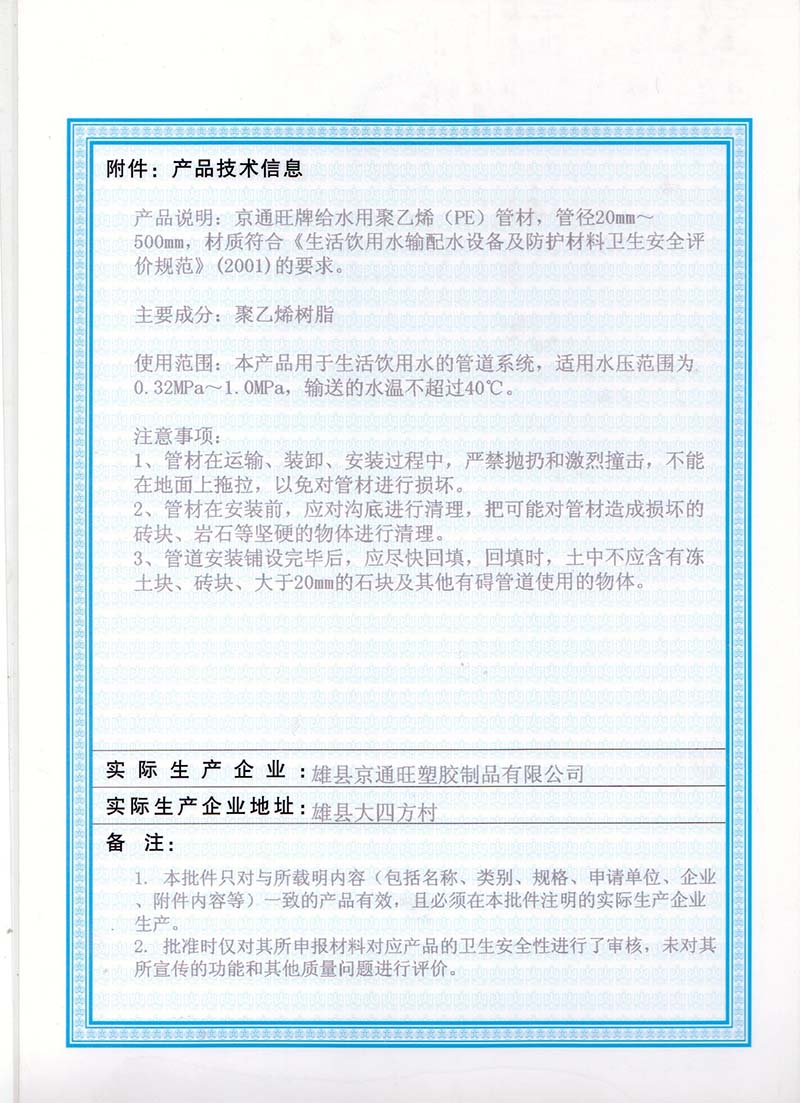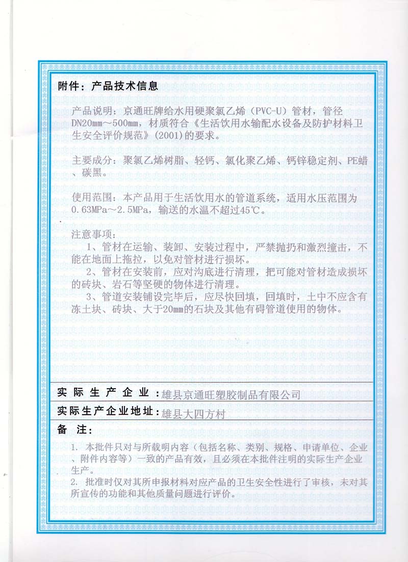 雄縣京通旺塑膠制品有限公司位于京、津、石經(jīng)濟(jì)帶中心,南臨白洋淀,東臨京/九鐵路,交通便利。本公司是一家專業(yè)從事管道生產(chǎn)制造的高科技企業(yè),擁有國內(nèi)外先進(jìn)的塑膠管材生產(chǎn)設(shè)備,擁有高素質(zhì)的職工隊(duì)伍。公司主導(dǎo)產(chǎn)品為電力管道系統(tǒng)(MPP電力管、PVC-C高壓電力管、CFRP碳素螺紋管、SBB玻璃鋼電纜保護(hù)管);通訊管道系統(tǒng)(HDPE、PVC雙壁波紋管、梅花管、三色光纜管、PE過道頂管、硅芯管、PVC方孔格柵管);給水管道系統(tǒng)(PE給水管材、管件);排水管道系統(tǒng)(PE雙壁波紋管、PVC雙壁波紋管)。產(chǎn)品廣泛應(yīng)用于建筑、工程、電信配套工程、給排水管道工程、電線電纜管道工程、農(nóng)業(yè)灌排工程、高速公路工程等。公司通過SO9001:2000國際質(zhì)量體系認(rèn)證和國家塑膠制品質(zhì)量監(jiān)督檢驗(yàn)中心、國際化學(xué)建筑材料檢測中心檢驗(yàn)合格,產(chǎn)品暢銷國內(nèi)20多個(gè)省市自治區(qū)。本公司一直以科技求生存,以誠信求發(fā)展,堅(jiān)持“質(zhì)量第一,信譽(yù)第一”的宗旨,客戶需求是我們不懈的追點(diǎn)擊查看