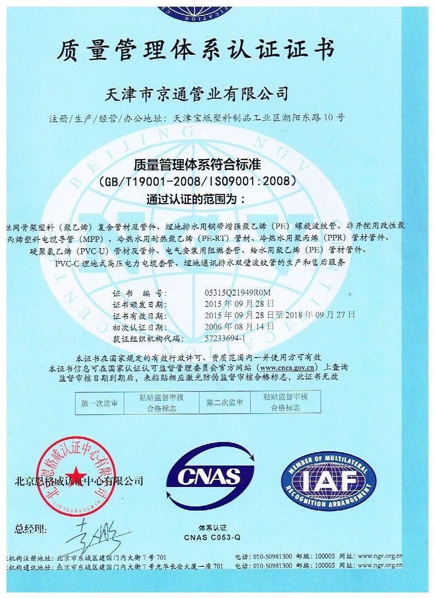天津市京通管業(yè)有限公司生產(chǎn)給水用PP-R、PE給水管、鋼絲網(wǎng)骨架管、PVCU給水管,排水用U-PVC管、雙壁波紋管、鋼帶增強(qiáng)螺旋波紋管,PVC電工管套、C-PVC地埋式高壓電力電纜套管、碳素管、多孔梅花管等系列產(chǎn)品,歡迎顧客洽談,聯(lián)系電話:18702288382點(diǎn)擊查看