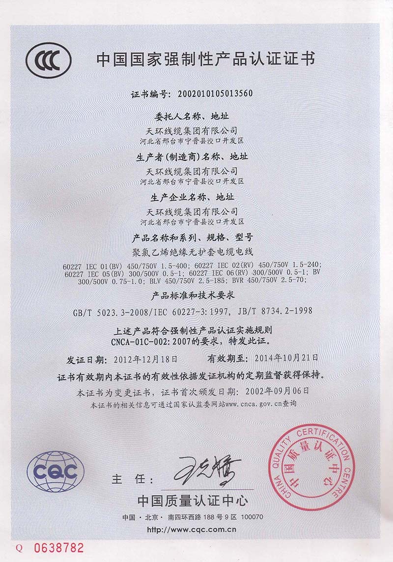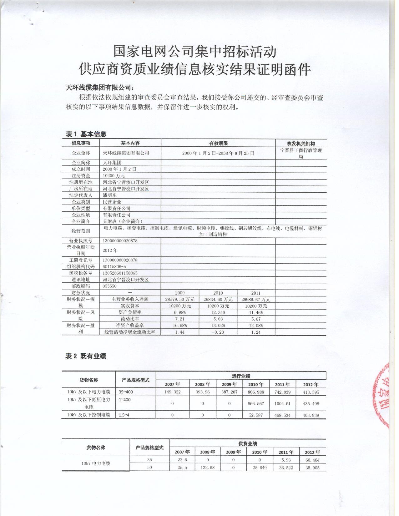 天環(huán)線纜集團(tuán)有限公司,座落于河北省邢臺(tái)境內(nèi),始建于2000年,占地面積11萬(wàn)平方米,建筑面積8.6萬(wàn)平方米,總資產(chǎn)1.2億,年生產(chǎn)能力20億元。現(xiàn)擁有員工560名,其中中高級(jí)專業(yè)技術(shù)人才60名。公司主要生產(chǎn)品種有:高低壓電力電纜、 控制電纜、阻燃電纜、耐火電纜、橡套電纜、礦用電纜、通訊電纜、鋁合金電纜、鋼芯鋁絞線和各種型號(hào)的電線、裸電線等系列,100多個(gè)品種,上千種規(guī)格。產(chǎn)品廣泛應(yīng)用于電力、煤礦、水利、建筑、通訊及民用等多個(gè)領(lǐng)域,暢銷全國(guó)28個(gè)省、市、自治區(qū),深受廣大用戶好評(píng)。公司擁有一流的自動(dòng)化三層共擠干法交聯(lián)電纜生產(chǎn)線2條,先進(jìn)的電線、電纜生產(chǎn)線15條,30臺(tái)精密的檢測(cè)儀器和 技術(shù)精湛的操作人員,在質(zhì)量指標(biāo)與成品檢驗(yàn)方面做到:質(zhì)量損失率為0,工業(yè)產(chǎn)品銷售率98%,產(chǎn)品最終檢驗(yàn)合格率為100%,產(chǎn)品出廠合格率100%,用戶滿意度達(dá)97%以上。 公司堅(jiān)持把“以質(zhì)量求生存,以信譽(yù)求發(fā)展”作為企業(yè)的經(jīng)營(yíng)宗旨,所生產(chǎn)的“天環(huán)”點(diǎn)擊查看