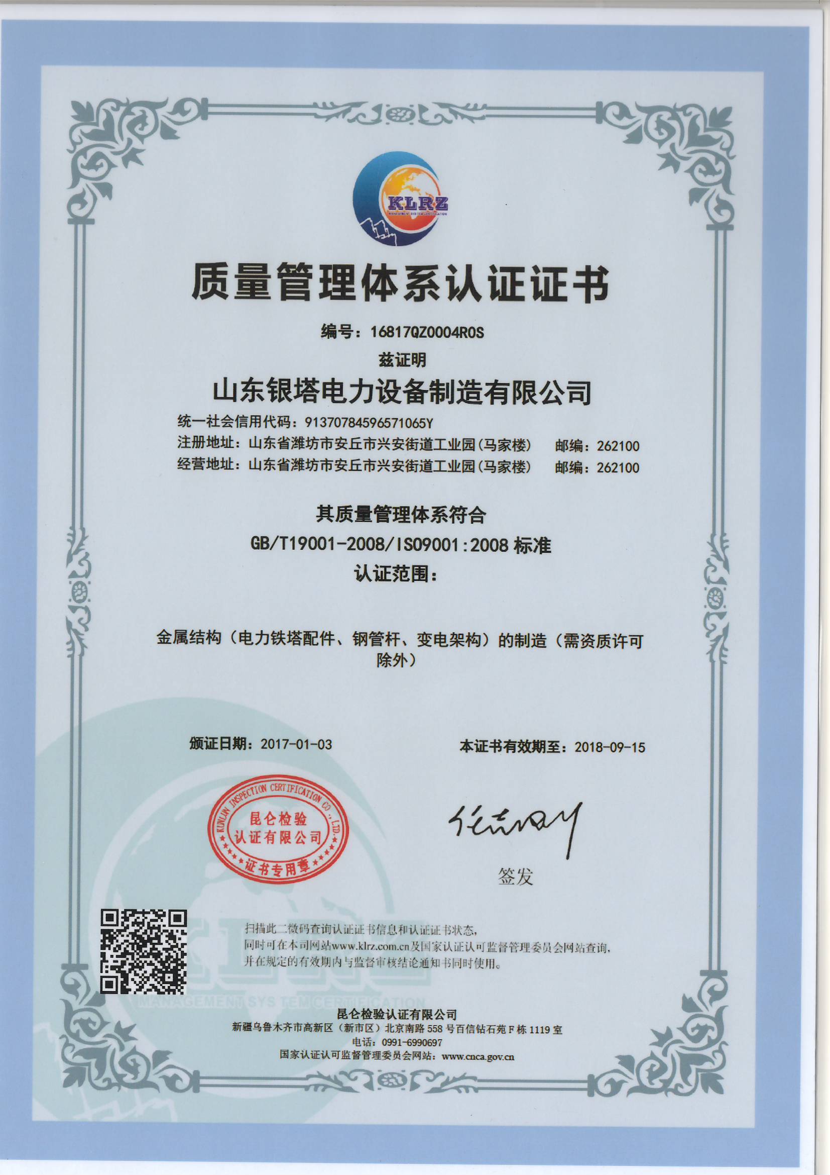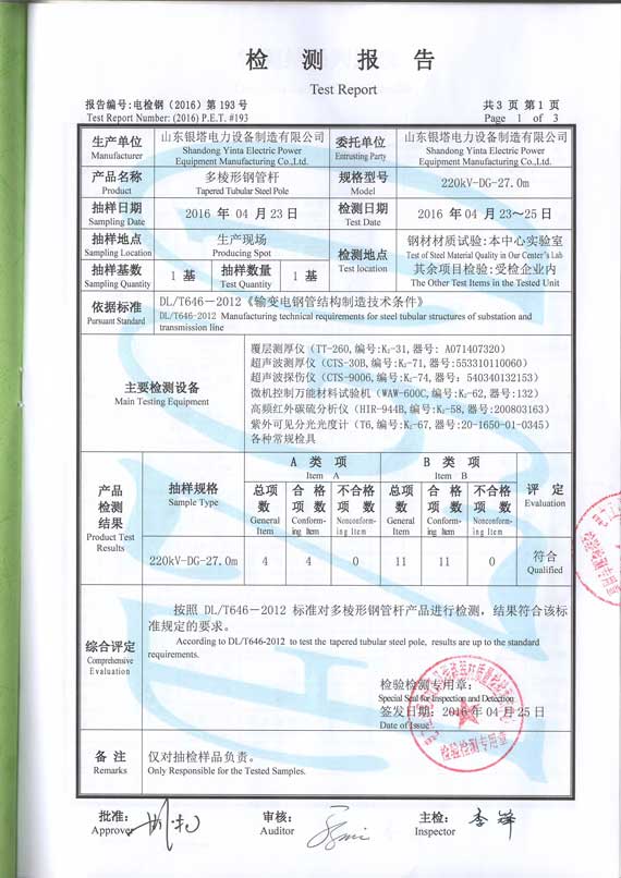 山東銀塔電力設(shè)備制造有限公司辦公室地址位于 山東省濰坊市安丘市興安街道工業(yè)園(馬家樓),于2012年05月22日在工商局注冊(cè)成立,注冊(cè)資本為9375萬元人民幣(萬元),在公司發(fā)展壯大的6年里,我們始終為客戶提供好的產(chǎn)品和技術(shù)支持、健全的售后服務(wù),我公司主要經(jīng)營(yíng)制造、銷售:金屬結(jié)構(gòu)(電力鐵塔及配件、變電架構(gòu)、通訊塔、電力金具、鐵路支架);建筑工程用機(jī)械、建筑材料生產(chǎn)專用機(jī)械;環(huán)境保護(hù)專用設(shè)備(以上經(jīng)營(yíng)范圍不含鑄造及電鍍,不含特種設(shè)備)。(依法須經(jīng)批準(zhǔn)的項(xiàng)目,經(jīng)相關(guān)部門批準(zhǔn)后方可開展經(jīng)營(yíng)活動(dòng)),我們有好的產(chǎn)品和專業(yè)的銷售和技術(shù)團(tuán)隊(duì),我公司是電力供應(yīng)業(yè)黃頁(yè)行業(yè)內(nèi)知名企業(yè)點(diǎn)擊查看