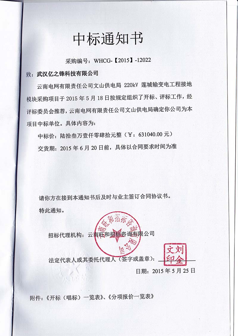 武漢億之烽科技有限公司是從事防雷與接地產(chǎn)品研發(fā)、生產(chǎn)、銷售、工程服務(wù)于一體的專業(yè)公司,公司成立于2008年,注冊(cè)資金1000萬元。公司取得“送變電工程專業(yè)承包 叁級(jí)”資質(zhì)。公司通過自主創(chuàng)新,發(fā)展特色高新技術(shù)產(chǎn)業(yè),擁有物理型接地模塊,物理型降阻劑,離子接地極,銅包鋼接地極,離子緩釋填料,放熱焊接,新型導(dǎo)電防腐涂料,儀器儀表等系列產(chǎn)品,自建生產(chǎn)基地,承接接地總包工程。 公司通過ISO 9001管理體系認(rèn)證,通過“國(guó)網(wǎng)電力科學(xué)研究院”7項(xiàng)試驗(yàn)檢測(cè)、“中國(guó)電力科學(xué)研究院”2項(xiàng)試驗(yàn)檢測(cè)、“農(nóng)業(yè)部農(nóng)業(yè)環(huán)境檢驗(yàn)測(cè)試中心”1項(xiàng)試驗(yàn)檢測(cè)、“南方電網(wǎng)試驗(yàn)檢測(cè)中心廣西電力科學(xué)研究院”1項(xiàng)試驗(yàn)檢測(cè)。 公司業(yè)績(jī)遍及全國(guó),產(chǎn)品及工程服務(wù)廣泛應(yīng)用在國(guó)家電網(wǎng)、南方電網(wǎng)、移動(dòng)、聯(lián)通、電信、鐵路、石化、軍工、氣象、機(jī)房等領(lǐng)域。點(diǎn)擊查看