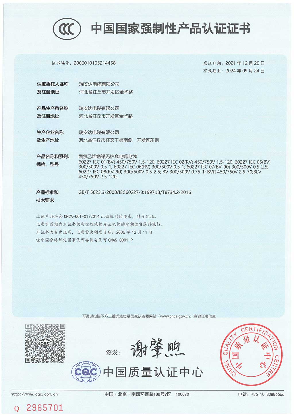 瑞安達電纜有限公司創(chuàng)建于2005年初,屬于國家高新技術企業(yè)、國家大型電纜制造、研發(fā)企業(yè),煤礦用電纜、裝備用電纜,在同行業(yè)中名列前茅。公司位于河北省任丘市經(jīng)濟技術開發(fā)區(qū),占地面積25萬平方米,建筑面積15萬平方米,現(xiàn)有固定資產(chǎn)10億元。公司現(xiàn)有員工268余人,其中高級工程師5名,工程師10名,設計研發(fā)人員42名,專業(yè)技術人員40余名?,F(xiàn)擁有3個生產(chǎn)廠區(qū),各類生產(chǎn)設備500多(臺)套,檢測試驗設備100多(臺)套。 生產(chǎn)銷售:電線電纜、電纜附件;加工銷售:銅、鋁、鋁合金制品、橡膠制品、塑料制品;銷售:光纖光纜及其組件、電纜原材料、鋼材、木材、工業(yè)線束、通訊產(chǎn)品連接件、電子插接件、機械設備、建筑裝飾材料、金屬材料、化工產(chǎn)品(化學危險品除外)、充電樁、新能源汽車(國家機動車主管部門許可的機動車)、辦公用品、通訊設備、電子產(chǎn)品;計算機軟硬件及附屬設備的研發(fā)、銷售;技術咨詢服務;企業(yè)管理咨詢服務;貨物進出口點擊查看