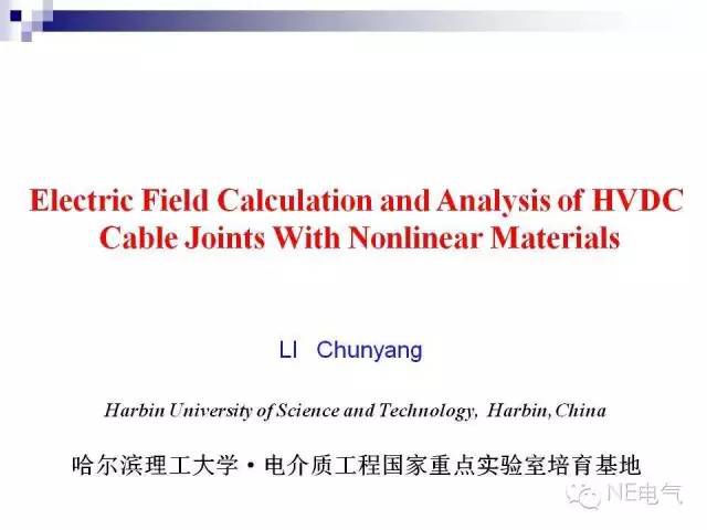 為了促進(jìn)學(xué)術(shù)、技術(shù)交流,小編準(zhǔn)備了很多電氣知識資料與大家共享。本文主講的是含有非線性材料的高壓直流電纜接頭電場分布計(jì)算和分析,作者李春陽,博士研究生,研究方向:高壓直流電纜用交聯(lián)聚乙烯絕緣材料改性方法;高壓電力電纜及其附件電、熱場分布計(jì)算;非線性納米電介質(zhì);電壓穩(wěn)定劑及其應(yīng)用。