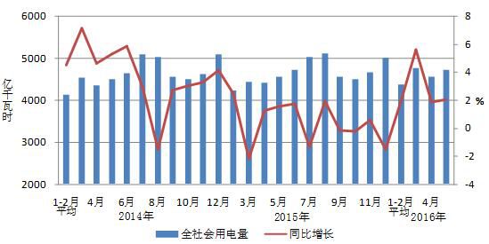 1-5月份,全國(guó)全社會(huì)用電量22824億千瓦時(shí),同比增長(zhǎng)2.7%,增速比上年同期提高1.7個(gè)百分點(diǎn)。