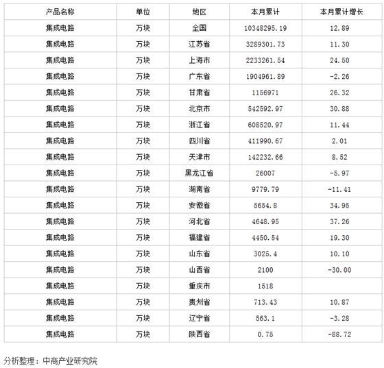 中商產(chǎn)業(yè)研究院數(shù)據(jù)顯示:2014年1-12月生產(chǎn)集成電路1034.83 億塊,同比增長12.89 %。