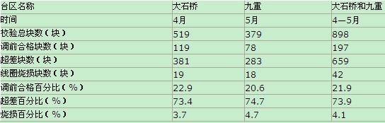 大石橋、九重復(fù)校運(yùn)行中V類電能表調(diào)前合格率統(tǒng)計(jì)表