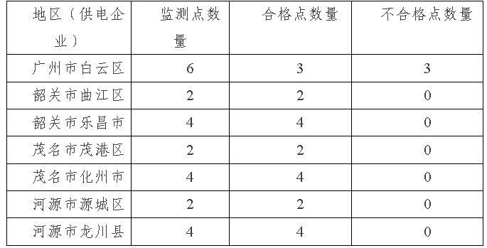 按照國(guó)家能源局部署,南方能源監(jiān)管局在廣東、廣西、海南省(區(qū))開(kāi)展“兩率”(供電可靠率和電壓合格率)監(jiān)測(cè)專(zhuān)項(xiàng)監(jiān)管工作。現(xiàn)將廣東、廣西、海南省(區(qū))有7月份“兩率”監(jiān)測(cè)情況通報(bào)如下:一、 監(jiān)測(cè)數(shù)據(jù)情況(一) 電壓合格率1. 廣東省全省24個(gè)電壓監(jiān)測(cè)點(diǎn)中,有3個(gè)D類(lèi)監(jiān)測(cè)點(diǎn)的數(shù)據(jù)不滿足《供電監(jiān)管辦法》的要求及供電企業(yè)公布的服務(wù)承諾