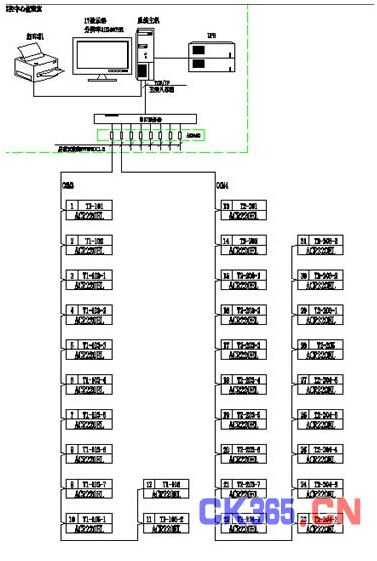 本監(jiān)控系統(tǒng)主要實現(xiàn)解放軍某部通信團的變電所的0.4kV配電系統(tǒng)進行用電監(jiān)控與電能管理;監(jiān)控范圍為該變電所的T1、T2變壓器的低壓進線柜、聯(lián)絡(luò)柜、饋線柜儀表進行遠程實時監(jiān)控和電能管理。該系統(tǒng)總計有31只儀表(ACR220EL),分2條總線,由于值班室距離該配電所不遠,故可直接采用屏蔽雙絞線組網(wǎng)連接至監(jiān)控主機的隔離轉(zhuǎn)換器實現(xiàn)總線上儀表與監(jiān)控主機的數(shù)據(jù)連通。