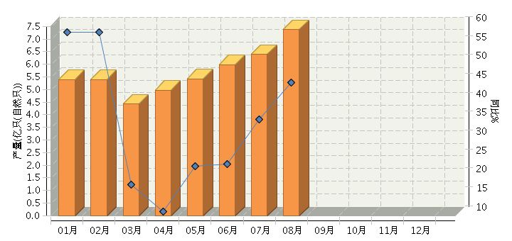 根據(jù)國家統(tǒng)計局公布數(shù)據(jù),2016年1~8月,全國鋰離子電池行業(yè)累計完成產(chǎn)量同比增長29.06%。其中:8月份完成產(chǎn)量同比增長45.16%。2016年全國鋰離子電池行業(yè)月度產(chǎn)量及同比如下圖所示。