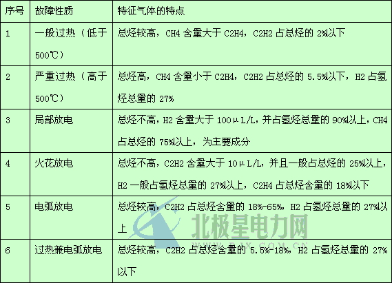 表2-1 判斷變壓器故障性質(zhì)的特征氣體特點(diǎn)