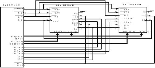 圖1 SDRAM與AVIA9700典型鏈接示意圖
