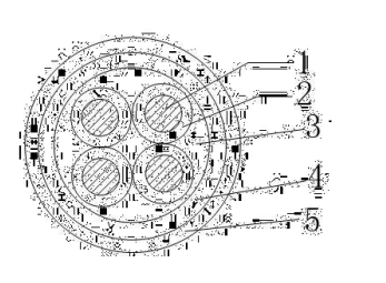 如圖 1 所示,本發(fā)明所述的一種陶瓷化硅橡膠絕緣防火電纜,包括纜芯,其纜芯由若干根絕緣線(xiàn)芯絞合而成,在纜芯內(nèi)空隙處填充阻燃填充 3,在纜芯外擠包鎧裝層 4,最外層擠包低煙無(wú)毒的塑性材質(zhì)外護(hù)套 5。所述絕緣線(xiàn)芯由導(dǎo)體 1 及包覆在導(dǎo)體 1 外的陶瓷化硅橡膠絕緣層 2 組成。