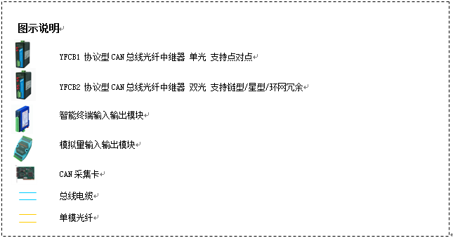 系統(tǒng)簡(jiǎn)介:將電網(wǎng)的參數(shù)采集,通過(guò)CAN卡傳送到控制中心的工控主機(jī),工控主機(jī)通過(guò)處理,將參數(shù)通過(guò)CAN卡輸出。通過(guò)CAN集線器將數(shù)據(jù)分為多路,再通過(guò)CAN總線光纖中繼器進(jìn)行數(shù)據(jù)遠(yuǎn)距離傳輸?shù)斤L(fēng)電場(chǎng),然后通過(guò)智能CAN總線IO模塊,將參數(shù)運(yùn)算處理后傳送到風(fēng)電控制系統(tǒng)。 應(yīng)用產(chǎn)品:YFCB1-S-ST 協(xié)議型CAN總線光纖中繼器 單模單光 ST接口 YFCB2-S-ST 協(xié)議型CAN總線光纖中繼器 單模雙光 ST接口