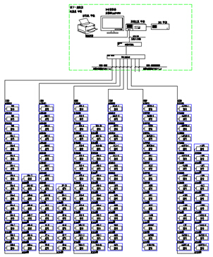本監(jiān)控系統(tǒng)主要實(shí)現(xiàn)常熟閱山軒假日酒店變電所及樓層配電箱進(jìn)出線進(jìn)行用電監(jiān)控與電能管理;監(jiān)控范圍為分布于變電所以及樓層各電井配電箱的儀表,對于這些多功能儀表進(jìn)行遠(yuǎn)程實(shí)時(shí)監(jiān)控和電能管理。該系統(tǒng)總計(jì)有130只儀表(其中兩臺ACR330ELH、71臺PZ80L-E4/KC、17臺PZ96L-E4/C、40臺DTSF1352),分6條總線,接入串口服務(wù)器,最后通過TCPIP網(wǎng)絡(luò)接至值班室監(jiān)控主機(jī),從而實(shí)現(xiàn)總線上儀表與監(jiān)控主機(jī)的數(shù)據(jù)連通。
