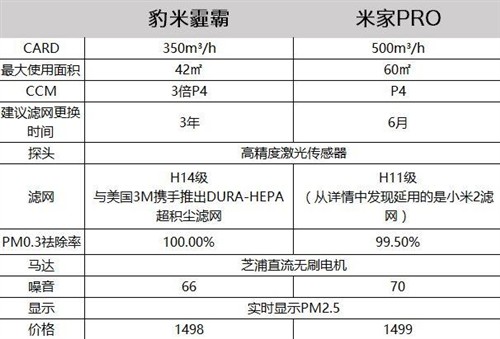 配置對比:豹米霾霸與米家Pro兩款空氣凈化器都采用了高精準激光傳感器,高精準激光傳感器可以使凈化器更精準的分析出空氣中顆粒物的濃度。霾霸凈化效率為每小時350m3,略小于米家Pro的每小時500m3。不過霾霸的濾網(wǎng)為醫(yī)療級DURA-HEPA超容塵濾網(wǎng),它的CCM(累計凈化量)為36000mg是新國際規(guī)定ccm的最高別P4(12000mg以上)的3倍,米家Pro采用了和小米空氣凈化器2一樣的濾網(wǎng),差于豹米霾霸。PM0.3去除率上豹米可以做到100%,相比米家Pro的99.50%略高一籌。