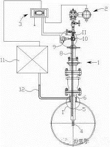 儀器和壓力變送器的信號(hào)輸出端與所述流量積算儀的信號(hào)輸入端相連,采用上述技術(shù)特征后可測(cè)量出管道內(nèi)溫合流體的準(zhǔn)確溫度和壓力,并把測(cè)量結(jié)構(gòu)輸入到流量積算儀,最終結(jié)合管道內(nèi)混合流體的流量、混合流體常溫常壓下的密度,并以管道內(nèi)的實(shí)際溫度和壓力作為補(bǔ)償,可在流量積算儀內(nèi)計(jì)算出管道內(nèi)混合流體的質(zhì)量流量。