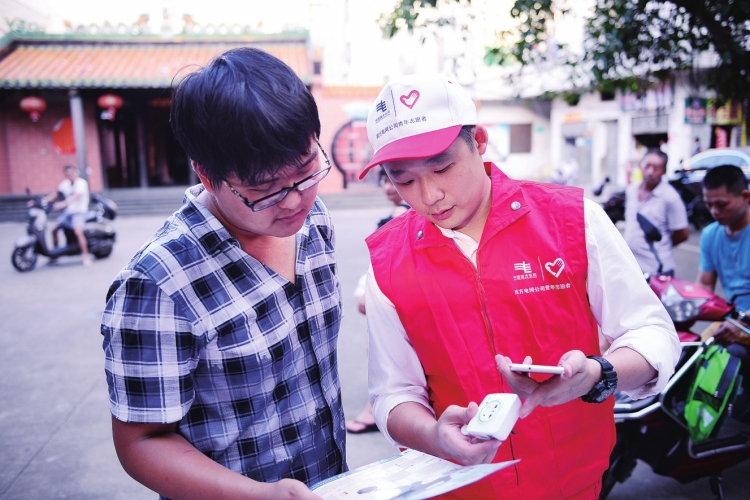 據(jù)悉,智能用電云服務平臺是基于海南電網(wǎng)公司目前的發(fā)售電能力、主配網(wǎng)架上探索用電服務的提高手段。其接入技術簡單便捷,具備很強的復制性和推廣性,該項目在已有的接入用戶的體量下,對客戶用電服務進行有益探索,在有序用電和居民用電服務等方面具有較強的示范意義。圖為海南電網(wǎng)公司工作人員向居民宣傳云服務智能節(jié)能用電。