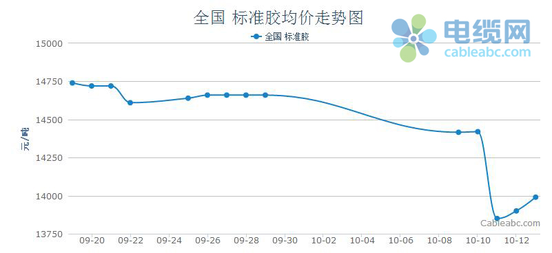 根據(jù)電纜網(wǎng)監(jiān)測數(shù)據(jù)表明:本周,國內(nèi)天然橡膠標(biāo)準(zhǔn)膠現(xiàn)貨價格呈現(xiàn)震蕩下跌,天然橡膠市場周一均價維持在14416左右,周末下跌至13990,下跌幅度為2.96%。本周天然橡膠商家出貨比較遲緩,天然橡膠整體市場氛圍清淡,交易情況不甚理想,交易氛圍較上周有下跌之勢。