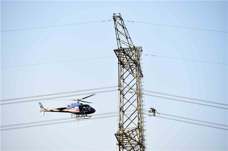 直升機(jī)轟鳴升空,風(fēng)起塵揚(yáng),一名全副武裝的人員隨之被直升機(jī)吊繩拉升至空中飛行,幾分鐘后準(zhǔn)確該人員穩(wěn)穩(wěn)地坐在高高的高壓電塔的導(dǎo)線上…… 這不是在電影院看好萊塢大片,這是發(fā)生在南方電網(wǎng)廣東公司500千伏襟桂線上的真實(shí)場景。9月13日,在廣東中山市板芙鎮(zhèn),南方電網(wǎng)公司將直升機(jī)帶電作業(yè)應(yīng)用于在運(yùn)行超高壓輸電線路,屬國內(nèi)首次,并取得圓滿成功。