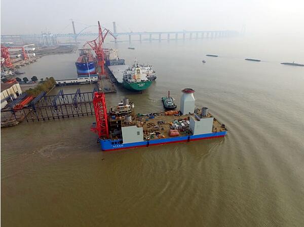 “海洋風(fēng)電69號(hào)”是南通海洋水建工程有限公司為適應(yīng)6MW海上風(fēng)機(jī)施工而定制的船舶,型長(zhǎng)85.8m、型寬40m、型深7m、結(jié)構(gòu)吃水4.8m、樁腿長(zhǎng)75m,平臺(tái)配有繞樁式主吊機(jī)500t×25m、可在10~40m水深海域施工作業(yè)。平臺(tái)下水后將立即進(jìn)行吊機(jī)及升降系統(tǒng)的安裝調(diào)試,計(jì)劃于2018年1月下旬參與海上風(fēng)電施工作業(yè),標(biāo)志著南通海洋水建工程有限公司在海上風(fēng)電施工領(lǐng)域更具優(yōu)勢(shì)競(jìng)爭(zhēng)力。