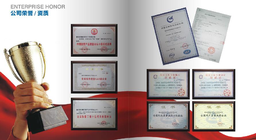 依托西部唯一直轄市——重慶得天獨厚的商務(wù)環(huán)境,秉持“追求卓越,共享發(fā)展”的理念,堅持“和諧、誠信、負(fù)責(zé)、主動、精細(xì)”的企業(yè)文化,憑借努力拼搏不斷創(chuàng)新的企業(yè)精神,在客戶的信任、朋友的關(guān)心、政府的支持和全體員工的共同努力下,通過抓質(zhì)量、抓管理、抓品牌,短短幾年時間已成為中國西部地區(qū)知名度高、影響力大和最具競爭力的優(yōu)勢防雷企業(yè)。
